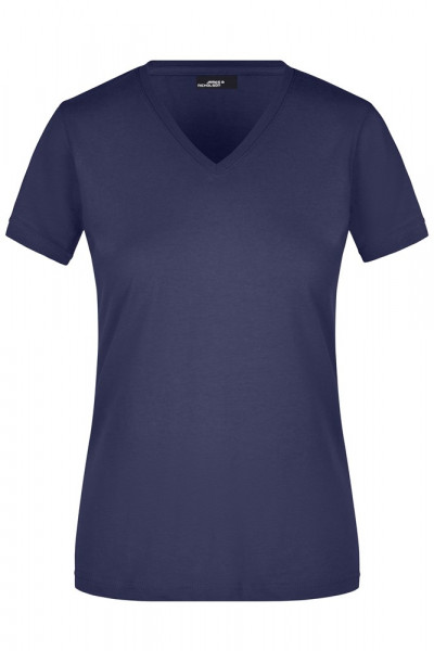 Einlaufvorbehandelter Single Jersey Gekämmte, ringgesponnene Baumwolle Körpernaher Schnitt mit Seitennähten V-Ausschnitt mit 1:1 Bündchen eingefasst JN972: Taillierter Schnitt 1/2 Oberweite: 42 cm 1/2 Taillenweite: 38 cm 1/2 Saumweite: 45 cm Länge ab Schulter: 62 cm OEKO-TEX® Standard 100 (15.0.70467) Baumwolle Slim Fit V-Ausschnitt