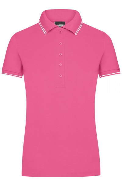 Gekämmte, ringgesponnene Baumwolle Gestrickter Polokragen und Armbündchen mit Kontraststreifen Seitenschlitze kontrastfarbig abgesetzt JN985: 5 Knöpfe, taillierter Schnitt JN986: 3 Knöpfe 1/2 Oberweite: 46 cm 1/2 Taillenweite: 41 cm 1/2 Saumweite: 46 cm Länge ab Schulter: 62 cm Ärmel Länge: 18 cm OEKO-TEX® Standard 100 (15.0.70467) kurz Baumwolle Elastan