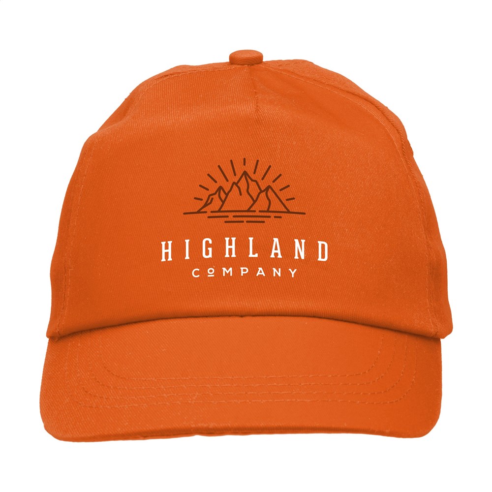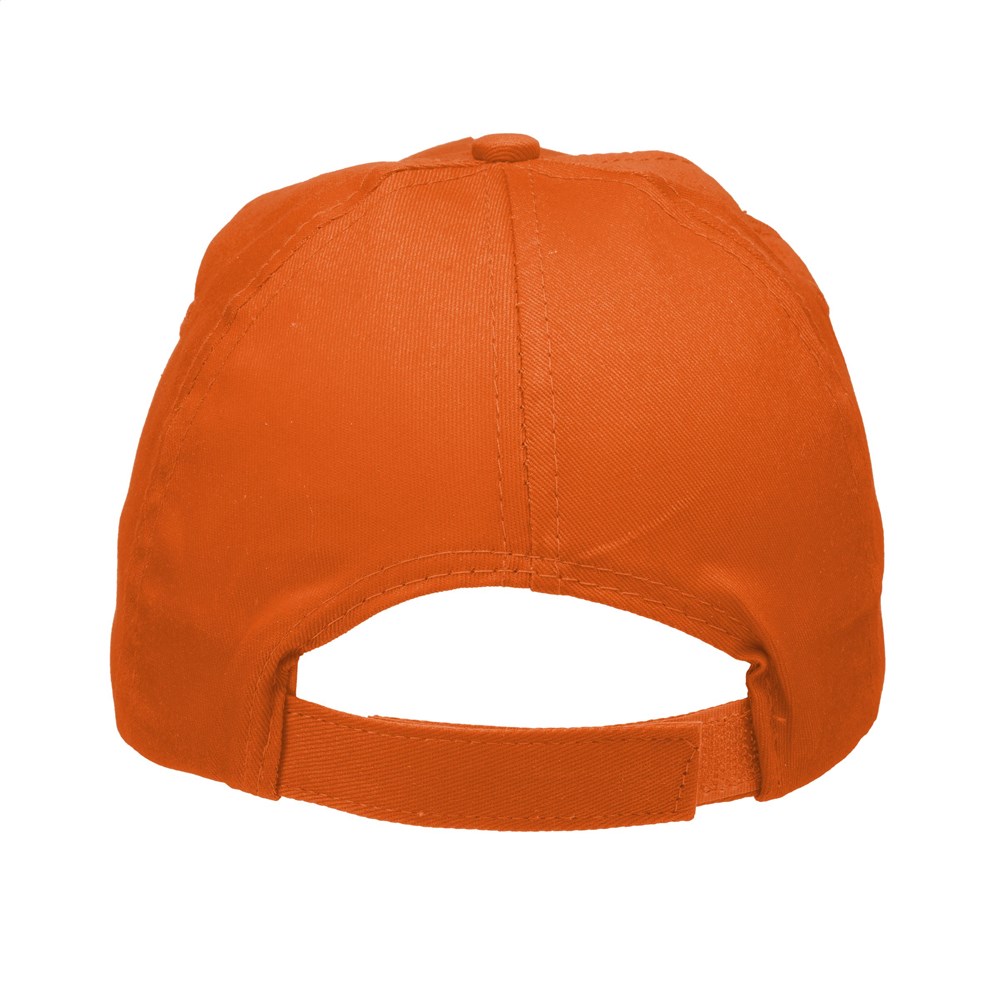 Baseballkappe aus 100% Baumwolle mit vorgeformtem Schirm und verstellbarem Verschluss.