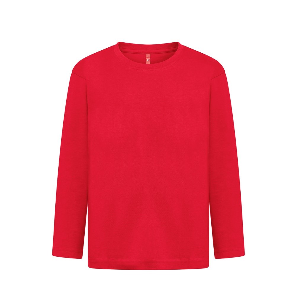 Langarm Oberteil (150 g/m²) mit enzymatischer Behandlung, für Kinder aus Jersey-Stoff (100% Baumwolle aus nachhaltigem Anbau). Kragen aus 1x1-Rippe mit Verstärkungsband aus Jersey. Schlauchförmiges T-Shirt mit regelmäßigem Schnitt und doppelten Nähten an den Ärmeln und am Saum. Größen: 2, 4, 6, 8, 10, 12