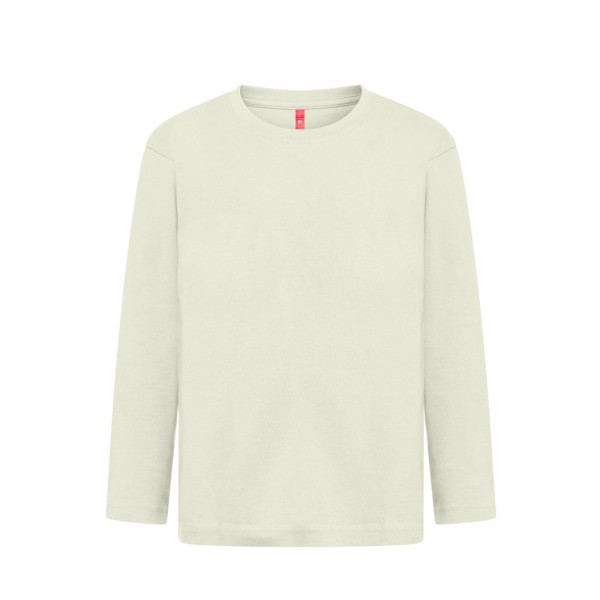 Langarm Oberteil (150 g/m²) mit enzymatischer Behandlung, für Kinder aus Jersey-Stoff (100% Baumwolle aus nachhaltigem Anbau). Kragen aus 1x1-Rippe mit Verstärkungsband aus Jersey. Schlauchförmiges T-Shirt mit regelmäßigem Schnitt und doppelten Nähten an den Ärmeln und am Saum. Größen: 2, 4, 6, 8, 10, 12