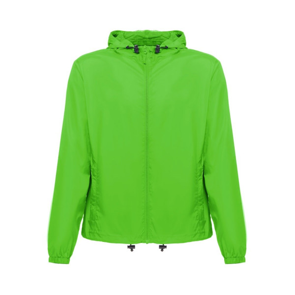Wasserdichte Windjacke (Unisex) aus 100% recyceltem Nylontaftgewebe (65 g/m²). Vordere Öffnung mit YKK®-Reißverschluss - eine Marke, die moderne Ausrüstung und hohe Qualitätskontrolle verwendet. Die Kapuze ist mit Mesh bezogen und hat Kordelzüge zum Zuziehen. Sie hat Ösen für eine gute Belüftung, einen elastischen Verschluss mit Stoppern am Saum und Seitentaschen mit Reißverschluss. Größen: XS, S, M, L, XL, XXL