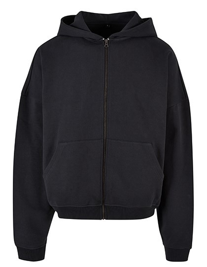 Hoody mit Reißverschluss | Oversize Passform mit stark überschnittenen Schultern | XXL-Kapuze | Geteilte Känguru-Tasche auf der Front | Breite Rippenbündchen an Ärmeln und Saum | Schwerer Baumwoll-Terry