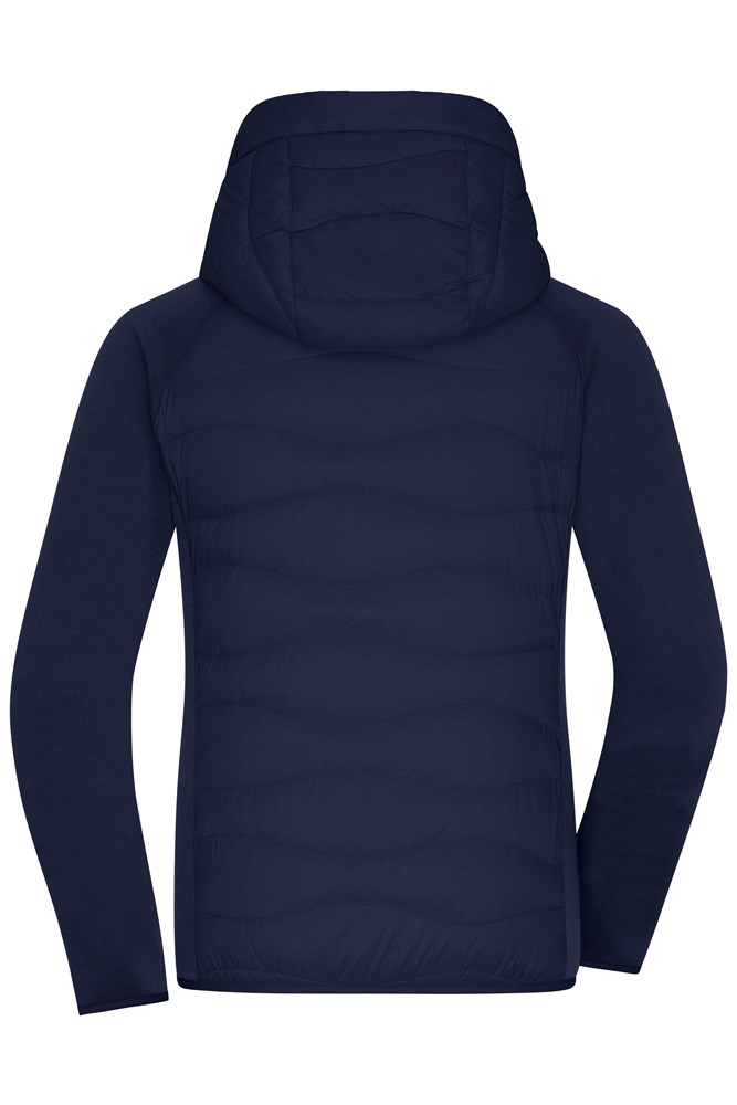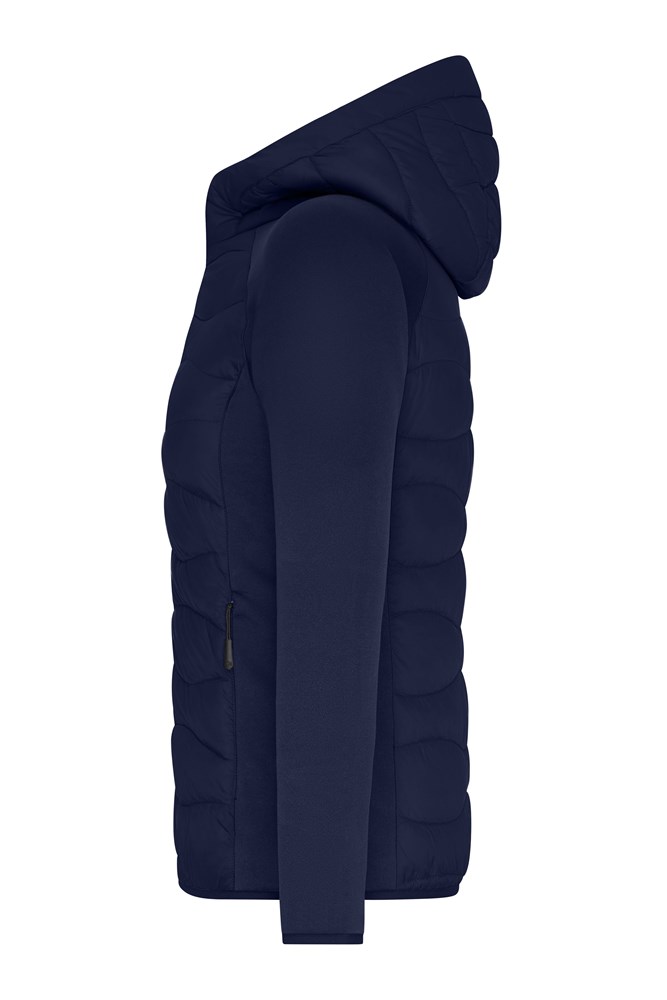 Pflegeleichter Stretchfleece kombiniert mit gesteppten Einsätzen im Vorder- und Rückenteil und Kapuze