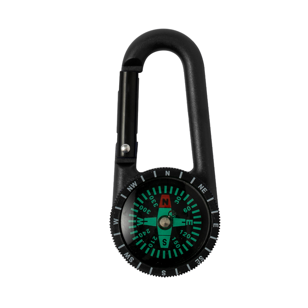 Kompass mit Karabiner in kräftigen Farben und robuster Ausführung.
