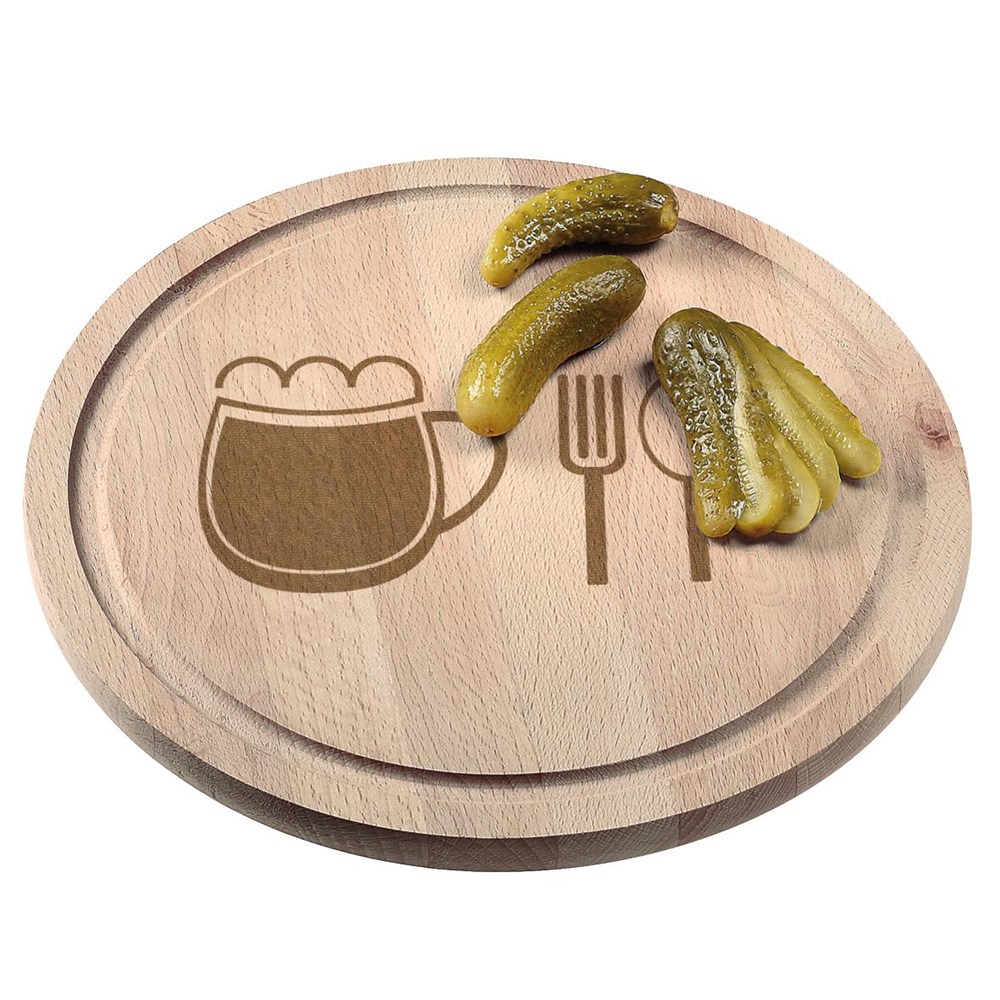 Das Runde. 13 mm starkes Schneid- oder Brotzeitbrett. Mit gefräster Rille am Rand gegen Herunterfließen von Flüssigkeiten. Ausschließlich von Hand spülen.