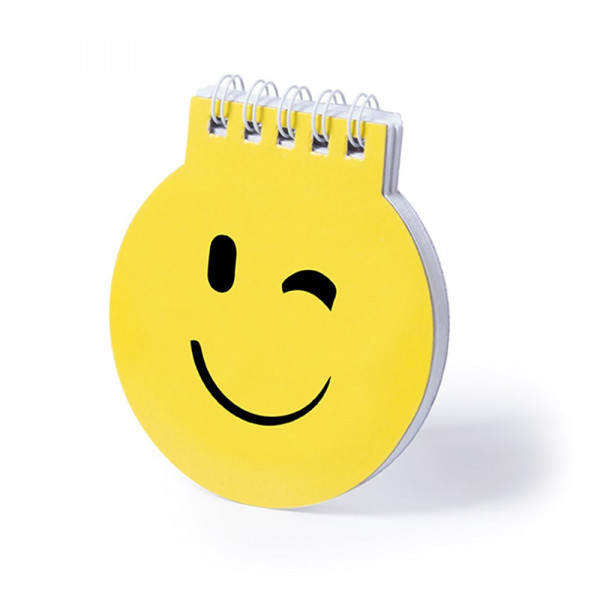 Notizbuch mit tollen Emoji-Designs in auffälligem Gelb. Mit weißen Ringen, Cover aus solidem Karton in glänzender Ausführung und 40 Blättern.