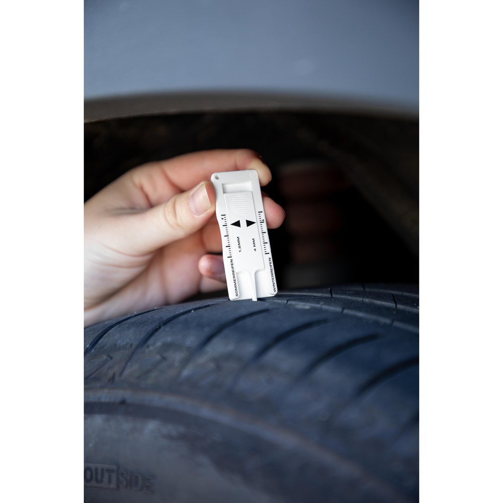 Immer griffbereit. Reifenprofilmesser mit Öse zum Befestigen am Schlüsselbund. Ohne Schlüsselring. mehr