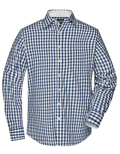 Modisches Karoshirt mit Uni-Einsätzen an Kragen und Manschette | Hochwertige, bügelleichte Popeline-Qualität mit Easy-Care Finish | Abgerundeter Saum | Classic fit | Leicht taillliert | Brusttasche 13 x 15 cm | 2 seitliche Rückenfalten