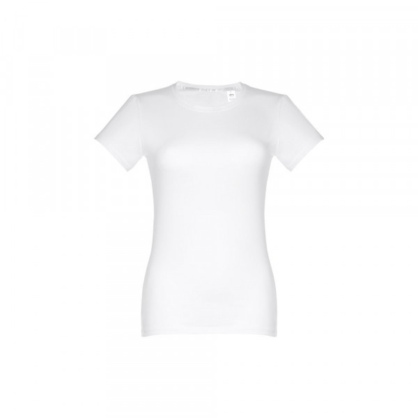 Damen T-shirt aus 100% Strickjersey und Baumwolle (190g/m²), tailliert mit kardiertem Baumwollfaden, dünnem Jersey-Kragen mit Satin-Verstärkungsband und Doppelnaht an Ärmeln und Saum. Größen: S, M, L, XL, XXL
