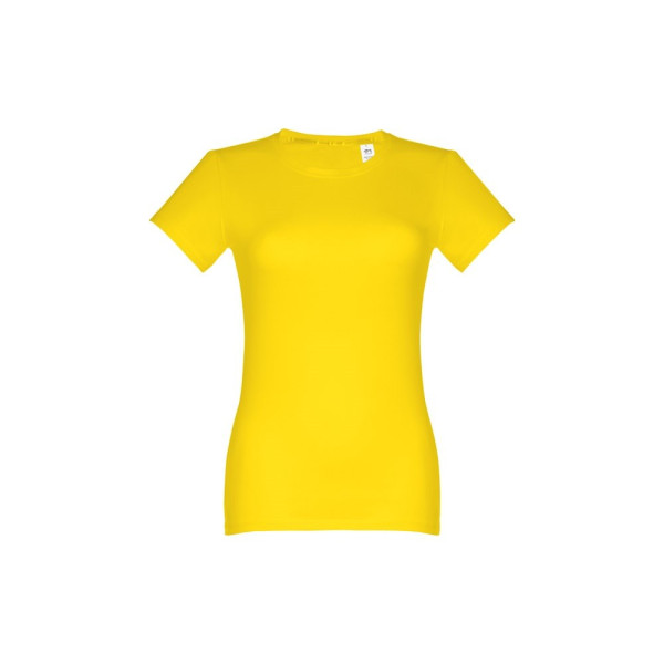 Damen T-shirt aus 100% Strickjersey und Baumwolle (190g/m²) mit kardiertem Baumwollfaden, tailliert. Diese hat einen dünnen Jersey-Kragen mit Satin-Verstärkungsband und Doppelnaht an Ärmeln und Saum. Bei der Farbe 183 bestehend aus 90% Baumwolle und 10% Viskose. Größen: S, M, L, XL, XXL