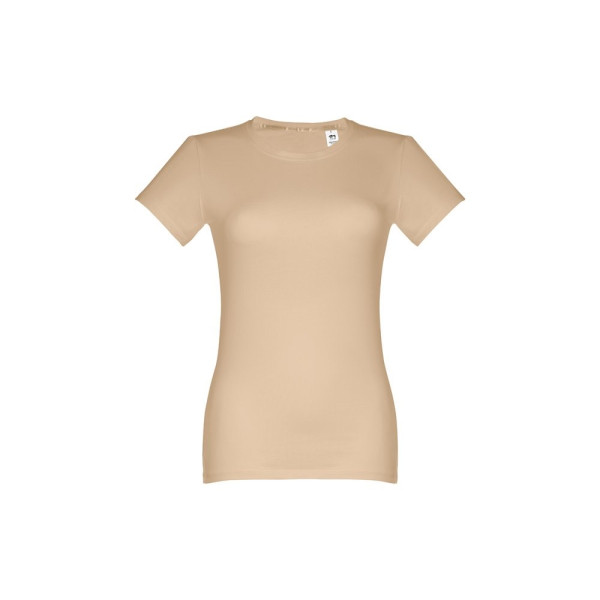 Damen T-shirt aus 100% Strickjersey und Baumwolle (190g/m²) mit kardiertem Baumwollfaden, tailliert. Diese hat einen dünnen Jersey-Kragen mit Satin-Verstärkungsband und Doppelnaht an Ärmeln und Saum. Bei der Farbe 183 bestehend aus 90% Baumwolle und 10% Viskose. Größen: S, M, L, XL, XXL