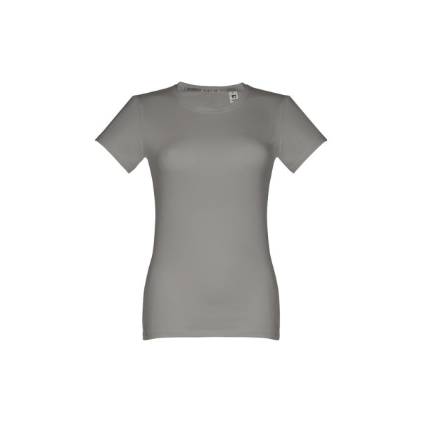 Damen T-shirt aus 100% Strickjersey und Baumwolle (190g/m²) mit kardiertem Baumwollfaden, tailliert. Diese hat einen dünnen Jersey-Kragen mit Satin-Verstärkungsband und Doppelnaht an Ärmeln und Saum. Bei der Farbe 183 bestehend aus 90% Baumwolle und 10% Viskose. Größen: S, M, L, XL, XXL