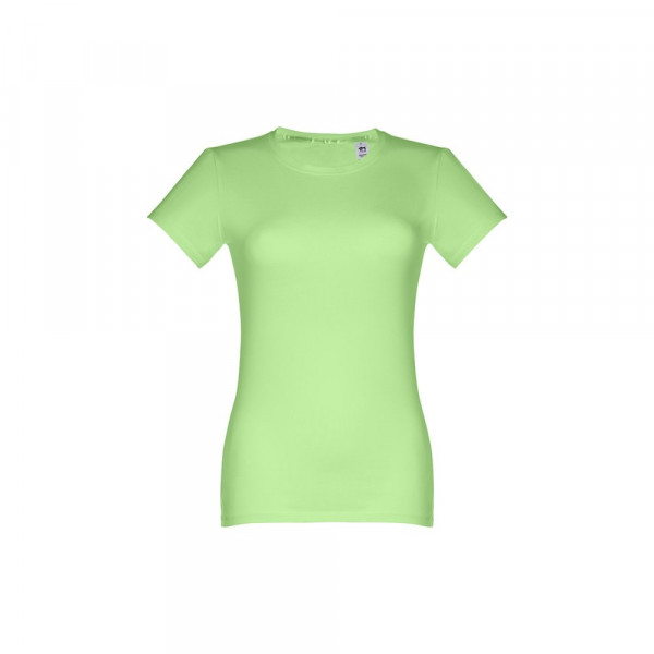 Damen T-shirt aus 100% Strickjersey und Baumwolle (190g/m²) mit kardiertem Baumwollfaden, tailliert. Diese hat einen dünnen Jersey-Kragen mit Satin-Verstärkungsband und Doppelnaht an Ärmeln und Saum. Bei der Farbe 183 bestehend aus 90% Baumwolle und 10% Viskose. Größen: S, M, L, XL, XXL