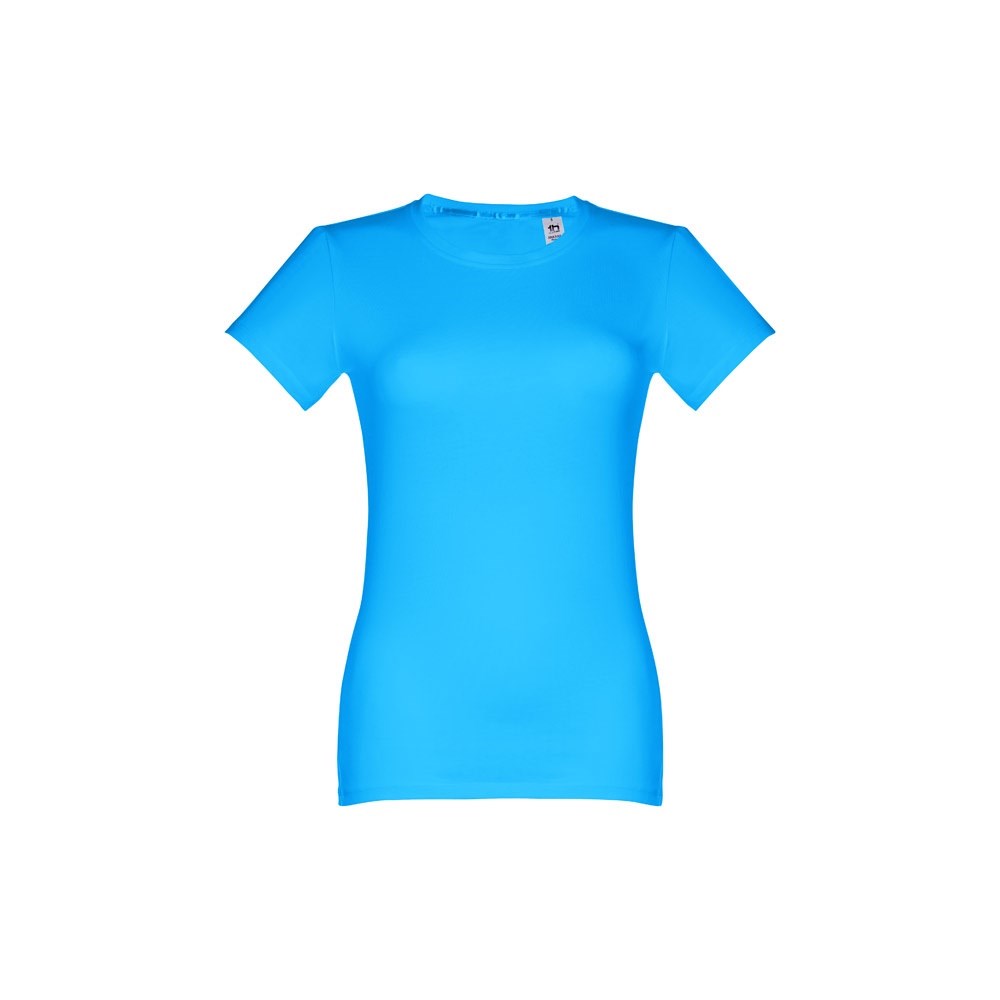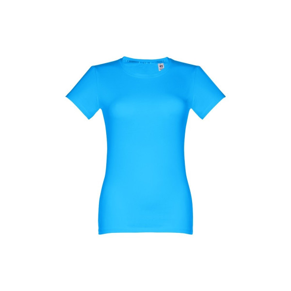 Damen T-shirt aus 100% Strickjersey und Baumwolle (190g/m²) mit kardiertem Baumwollfaden, tailliert. Diese hat einen dünnen Jersey-Kragen mit Satin-Verstärkungsband und Doppelnaht an Ärmeln und Saum. Bei der Farbe 183 bestehend aus 90% Baumwolle und 10% Viskose. Größen: S, M, L, XL, XXL