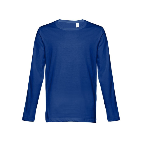 Herren Langarmshirt aus 100% Strickjersey und Baumwolle (150g/m²) mit kardiertem Baumwollfaden, in Tubular-Form, geripptem Kragen in 1x1 Ripp, Jersey-Verstärkung und Doppelnaht an Ärmeln und Saum. Bei den Farben 195, 195 bestehend aus 60% Baumwolle und 40% Polyester, Farbe 183 bestehend aus 90% Baumwolle und 10% Viskose. Größen: S, M, L, XL, XXL
