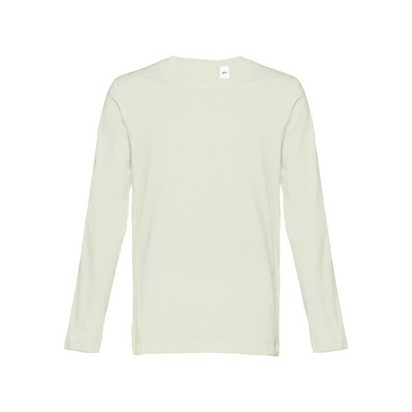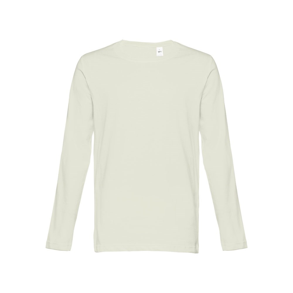 Herren Langarmshirt aus 100% Strickjersey und Baumwolle (150g/m²) mit kardiertem Baumwollfaden, in Tubular-Form, geripptem Kragen in 1x1 Ripp, Jersey-Verstärkung und Doppelnaht an Ärmeln und Saum. Bei den Farben 195, 195 bestehend aus 60% Baumwolle und 40% Polyester, Farbe 183 bestehend aus 90% Baumwolle und 10% Viskose. Größen: S, M, L, XL, XXL