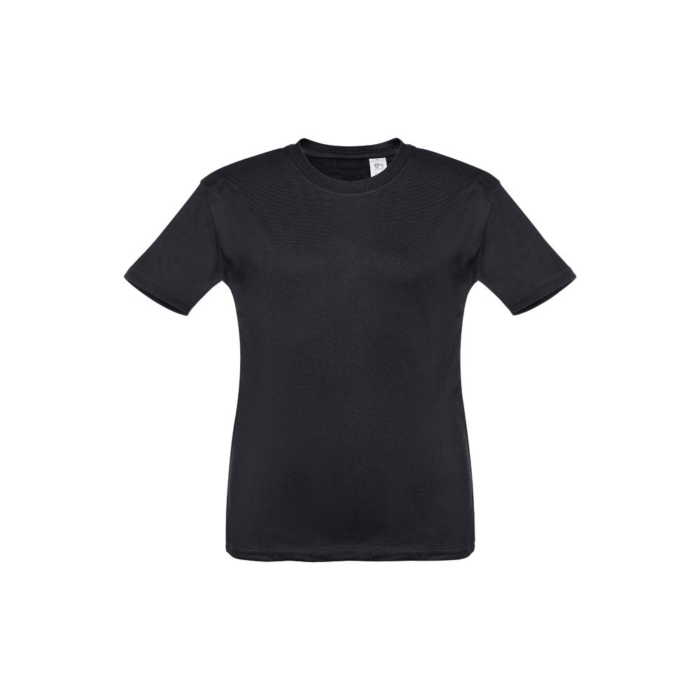 Kinder T-Shirt aus 100% Strickjersey und Baumwolle (150g/m²), unisex mit geripptem Kragen in 1x1 Ripp, Jersey-Verstärkung und Doppelnaht an den Ärmeln und Saum. Größen: 2, 4, 6, 8, 10, 12