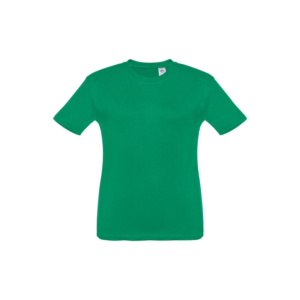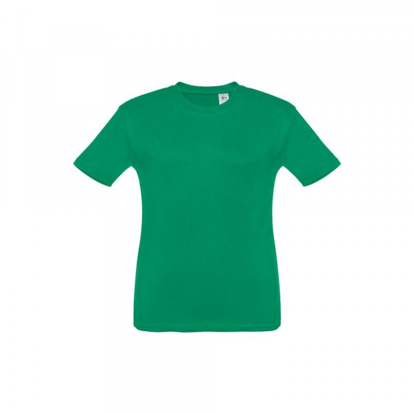 Kinder T-Shirt aus 100% Strickjersey und Baumwolle (150g/m²), unisex mit geripptem Kragen in 1x1 Ripp, Jersey-Verstärkung und Doppelnaht an den Ärmeln und Saum. Größen: 2, 4, 6, 8, 10, 12