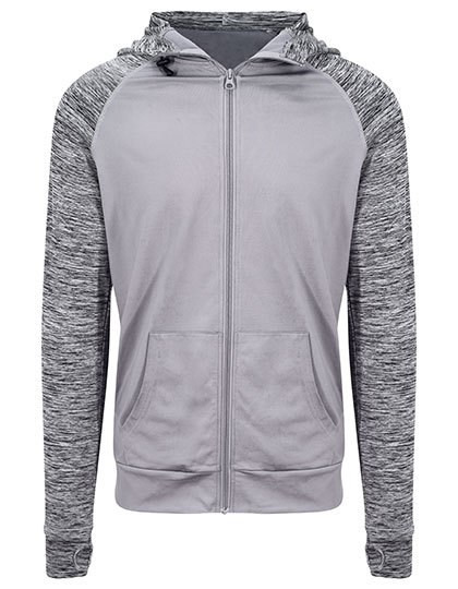Slim Fit und | Mischgewebe von AWDis mit Elasthan für hohen Tragekomfort und hervorragende Passform | Feuchtigkeitsableitendes, schnell trocknendes Material | Durchgehender Reißverschluss an der Vorderseite | Ärmel in melierter Kontrastfarbe | Kängurutasche | Hinten verlängerter Saum | Kapuze mit verstellbaren Knebeln | Daumenöffnungen | Raglan-Ärmel | Abreißetikett