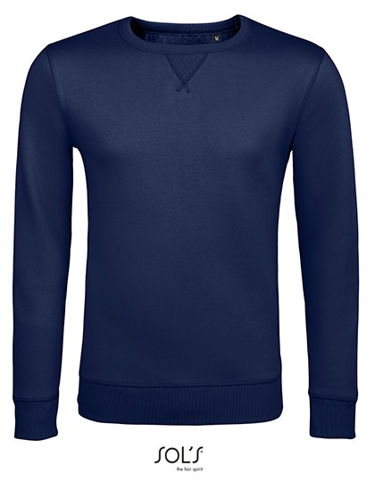 Fleece-Material mit geringer Schrumpfung; 80% Ringspun-Baumwolle / 20% Polyester; angerautes Futter; Außen: 100% Baumwolle | Rundhals mit gesticktem V-Einsatz | 2 x 2 gerippte Ärmelabschlüsse, Kragen und Saum | Eingesetzte Ärmel | Geschnitten und genäht | Halbmondpasse auf der Krageninnenseite | Nackenband | Kein Label