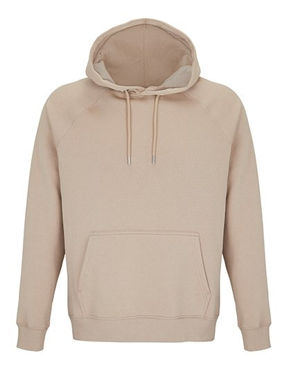Fleece 280 | 80% Bio-Baumwolle / 20% recycelter Polyester | 3-Faden-Garn | Innen gebürstet | Obermaterial: 100% Baumwolle, Ripp-Stoff: 97% Bio-Baumwolle / 3% Elasthan | Bio-Hoodie | Seitennaht | Überkreuzter Kragen | Kängurutasche | Raglan-Ärmel | Halbmond im Nackenbereich | Jersey-Nackenband | 2 x 2 gerippte Ärmelabschlüsse und Saum | Silberne Ösen und Stopper | Runder Ton-in-Ton-Kordelzug | Kein Label
