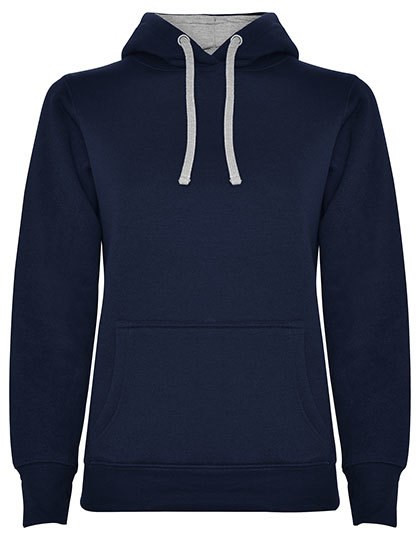 Innen angeraut | Tailliert | Kapuze innen (Single Jersey), Kordelzug und Metall-Ösen in Kontrastfarbe | Nackenband mit Fischgrätmuster | Kangorootasche | Ärmelbündchen und Saum mit 1x1 Ripp-Strick und Elasthan | Ärmelbündchen mit Daumenöffnung | Herausreißbares Label