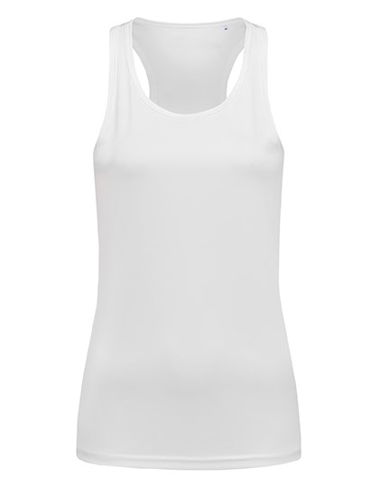 Racerback-Rücken | Halsausschnitt und Armlöcher eingefasst | Weiches und leicht glänzendes Material | Kleines, reflektierendes ACTIVE-DRY°-Logo auf der Rückseite | Kleines Größenetikett im Nacken | Pflegeetikett in der Seitennaht | Seitennähte | Waschbar bis 40 °C | Körperbetonte Passform