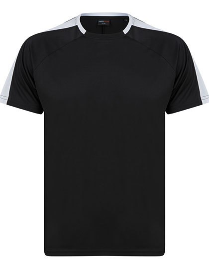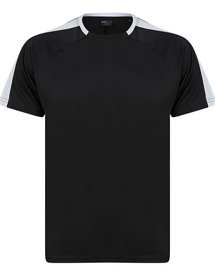 Single Jersey | Unisex | Eigenmaterial-Ärmeleinsätze in Kontrastfarbe | Sportliche Passform | Die ableitende Oberfläche sorgt für Feuchtigkeitsregulierung | Schnell trocknend und atmungsaktiv | 2-teiliger Kragen aus Eigenmaterial in Kontrastfarbe | Raglan-Schulter | Abreißetikett