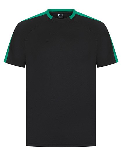 Single Jersey | Unisex | Eigenmaterial-Ärmeleinsätze in Kontrastfarbe | Sportliche Passform | Die ableitende Oberfläche sorgt für Feuchtigkeitsregulierung | Schnell trocknend und atmungsaktiv | 2-teiliger Kragen aus Eigenmaterial in Kontrastfarbe | Raglan-Schulter | Abreißetikett