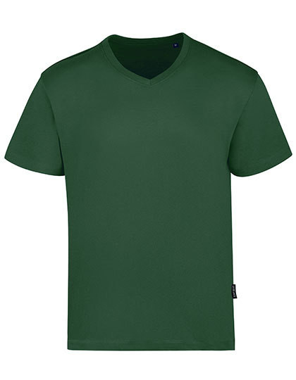 Ringgesponnene, gekämmte Bio-Baumwolle | Single Jersey | V-Ausschnitt | Modischer, körperbetonter Schnitt | Seitennähte | Schulter-zu-Schulter Nackenband, verstärkt durch Doppelnähte | Ohne Label | Gewebtes Fair4All Flaglabel in der linken Seitennaht | Waschbar 60 °C und für Industriewäsche geeignet | Einlaufvorbehandelt und Antipilling | BSCI zertifizierte Produktion