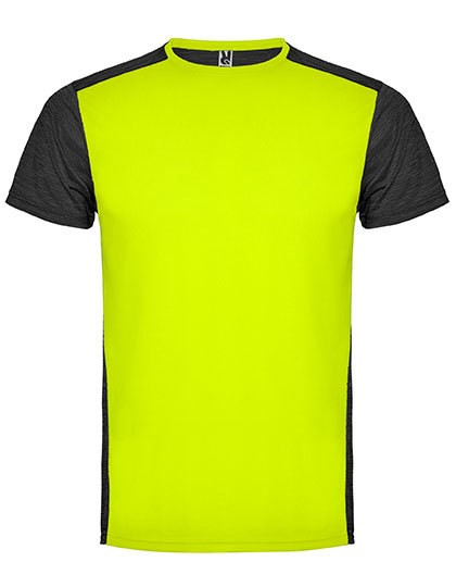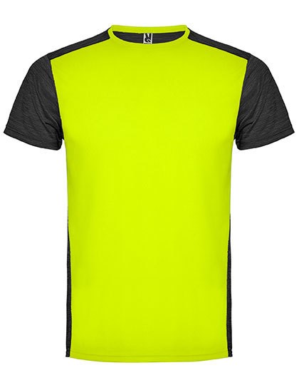 Vorderseite: 100% bird's eye Polyester, Rückseite: 100% Polyester Space Dye, 135 g/m² | Funktions-T-Shirt, kurzarm | Rundhals | Kombination von zwei Polyestergeweben an Rücken, Schultern und Ärmeln | Schnitt mit verlängertem Rücken | Schnelltrocknendes, atmungsaktives Gewebe | Herausreißbares Label | Funktionsmaterial